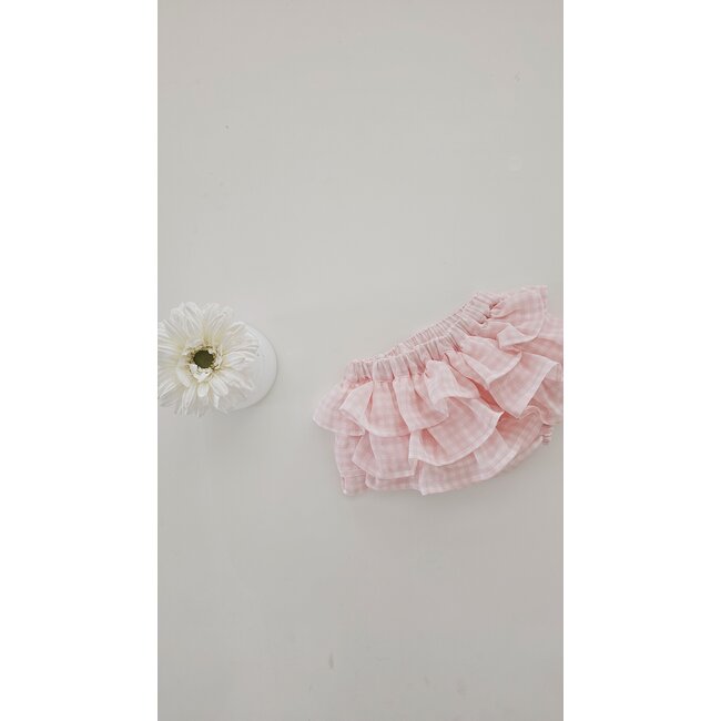 Drielagig chiffon bloomertje in prachtige roze Vichy stof.