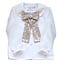 Prachtige witte chiffonblouse afgewerkt met kraagje, vaste gouden glitter pailettenstrik en parelknoopjes.