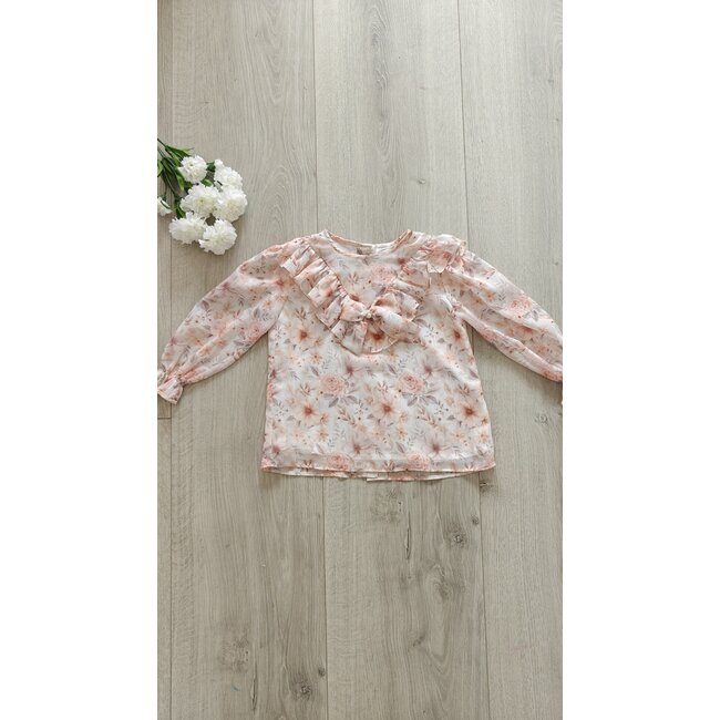 Basic blouse Saniya met net dat tikje meer! Kleur ivoor prachtig afgewerkt met lurex gouddraad, V-kraagje, parels en strik.