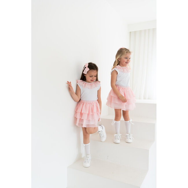 Drielagig chiffon rokje in prachtige roze Vichy stof.