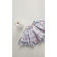 Rokje in prachtige blauwe bloemenprint met roze details in chiffonstof met ruches, afgewerkt met lurex gouddraad.