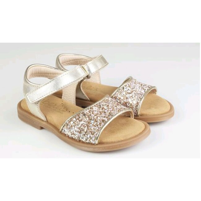 Prachtig gouden sandaaltje met glitter details van Beberlis.